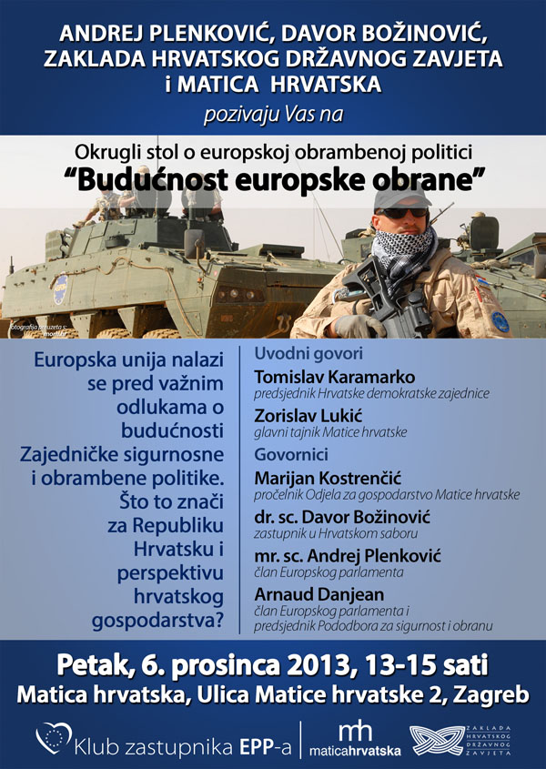 Zaklada hrvatskog državnog zavjeta, Matica hrvatska, Andrej Plenković i Davor Božinović organizirali su Okrugli stol o europskoj obrambenoj politici