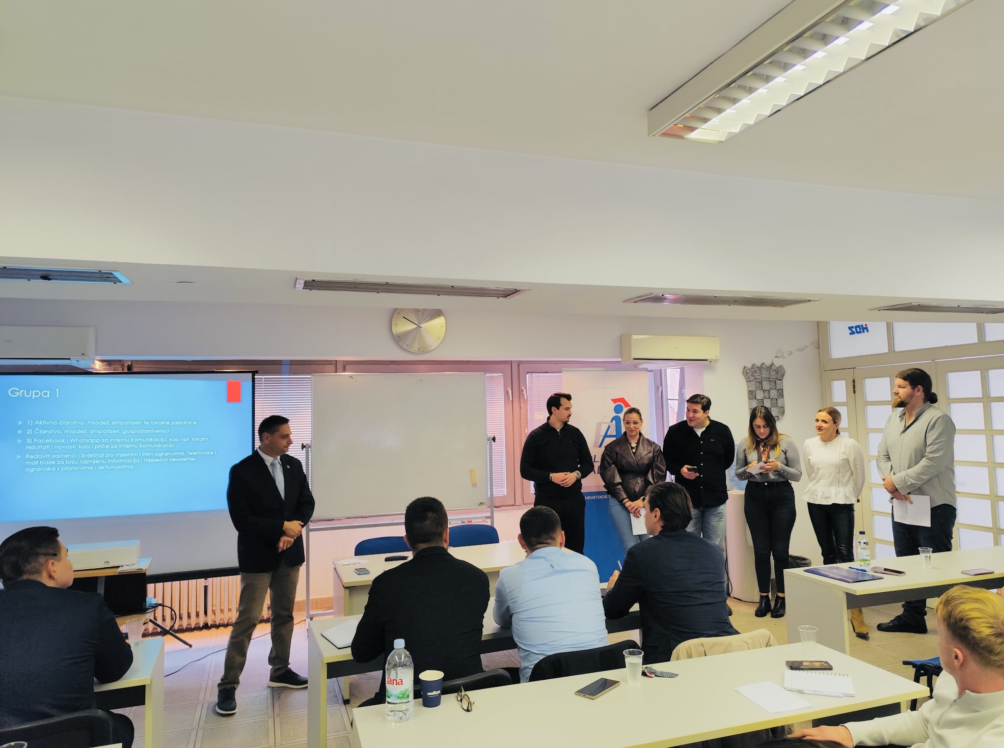 Na kolegiju Interna politička komunikacija, predavanje je održao Zdeslav Milas, koji je naglasio važnost učinkovite komunikacije unutar političkih organizacija. Poseban je naglasak stavljen na korištenje suvremenih digitalnih alata i umjetne inteligencije u stranačkoj komunikaciji. Modul je zaključen prezentacijama grupnih radova polaznika.